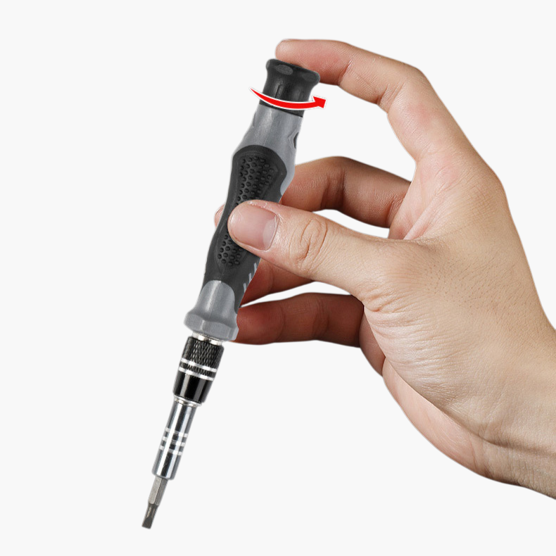 Screwdriver set includes multiple precision bits, ergonomic handle, durable materials, and magnetic tips for efficient repairs and assembly.